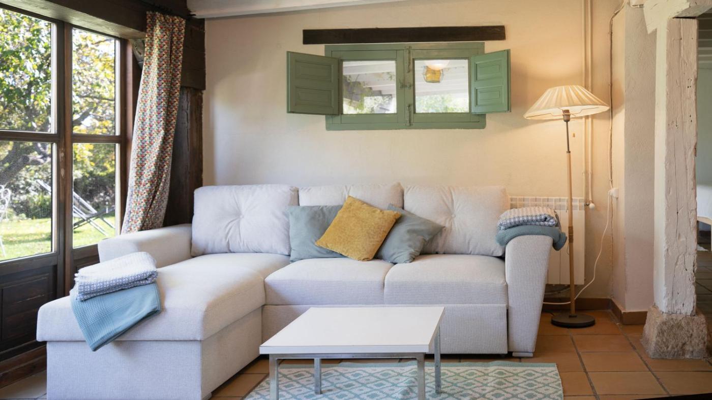 Esta casa rural con aire acondicionado consta de 2 dormitorios, una sala de estar, una cocina totalmente equipada con nevera y cafetera, y 1 baño con bidet y bañera o ducha. Hay toallas y ropa de cama en la casa rural.