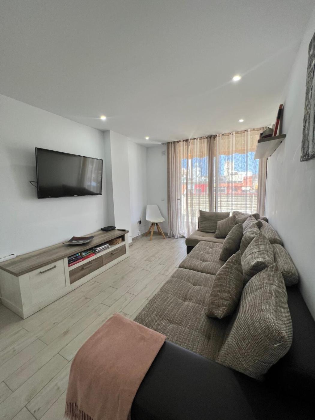 El apartamento cuenta con terraza y vistas a la ciudad, y dispone de 3 dormitorios, una sala de estar, TV de pantalla plana, una cocina equipada con nevera y horno, y 2 baños con ducha. Hay toallas y ropa de cama en el apartamento.