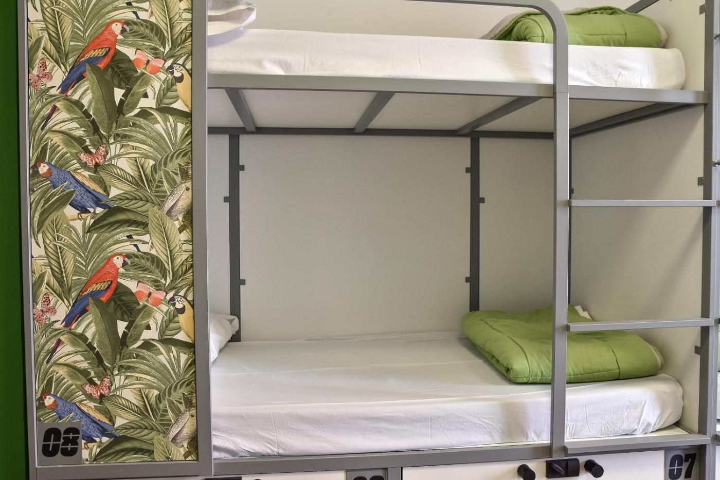 Cama individual en dormitorio mixto compartido (6 camas). Habitación compartida con aire acondicionado, taquillas individuales y baño compartido. ;