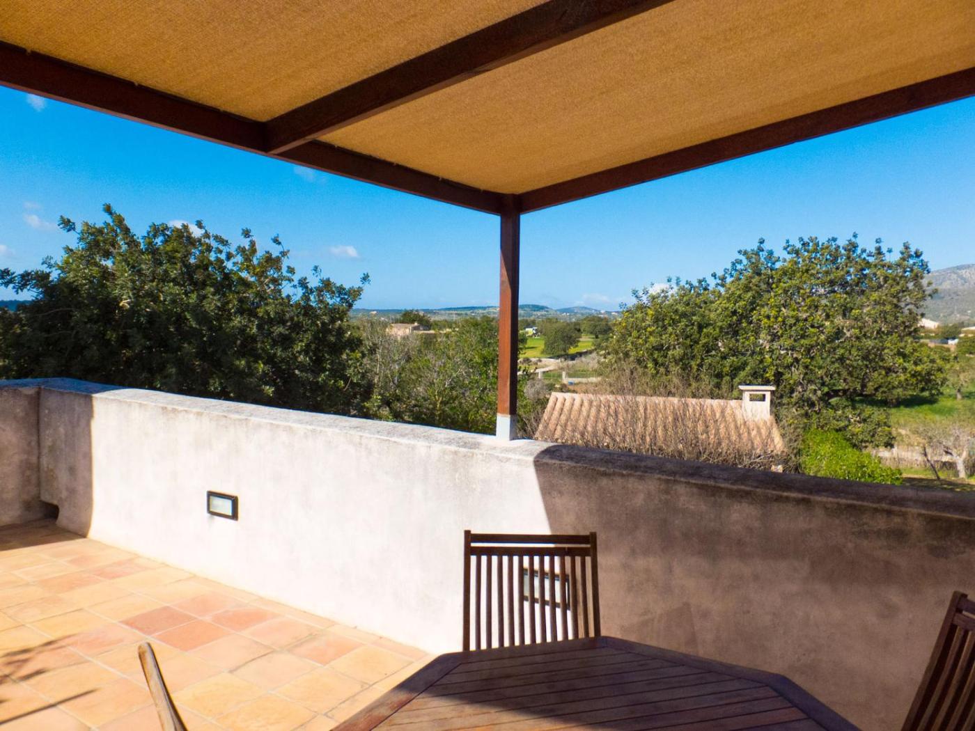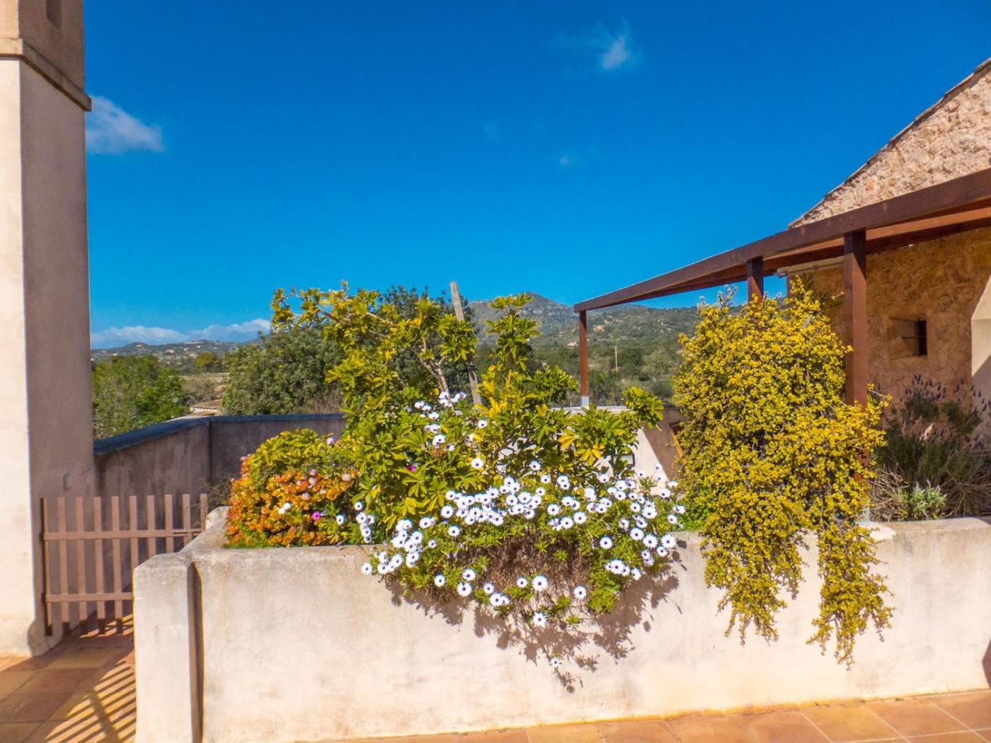 Sa Formatgera - Apartamento de 1 dormitorio con terraza (2 adultos + 1 niño). Ubicado en el primer piso, este apartamento presenta una decoración tradicional mallorquina con techos con vigas y toques modernos de colores claros. Hay una zona de estar con sofá y TV de pantalla plana vía satélite y una pequeña cocina con nevera y vitrocerámica. Incluye aire acondicionado y conexión wifi gratuita. Tiene acceso a una terraza con vistas al jardín y a la montaña. ;