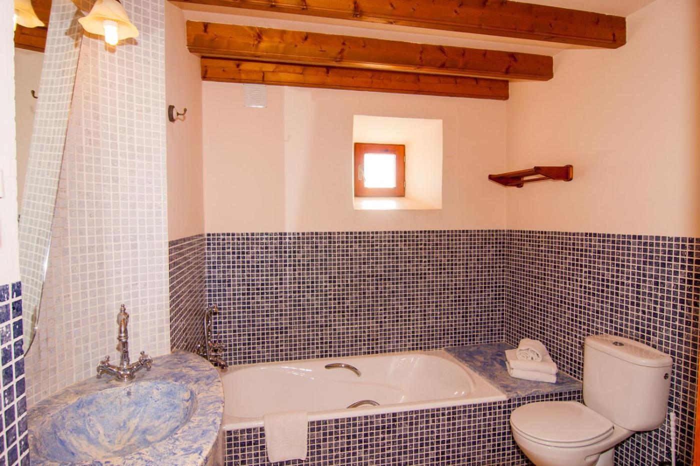 Sa Boal: Apartamento Comfort (2 adultos + 2 niños). El apartamento y el baño están adaptados para personas con movilidad reducida. Este apartamento presenta vigas de madera a la vista y una decoración moderna y cuenta con sala de estar con TV vía satélite y sofá. La cocina está equipada con vitrocerámica y nevera. Cuenta con aire acondicionado, wifi gratuito y sofá. El apartamento tiene acceso a una piscina y una terraza con vistas a la montaña. ;