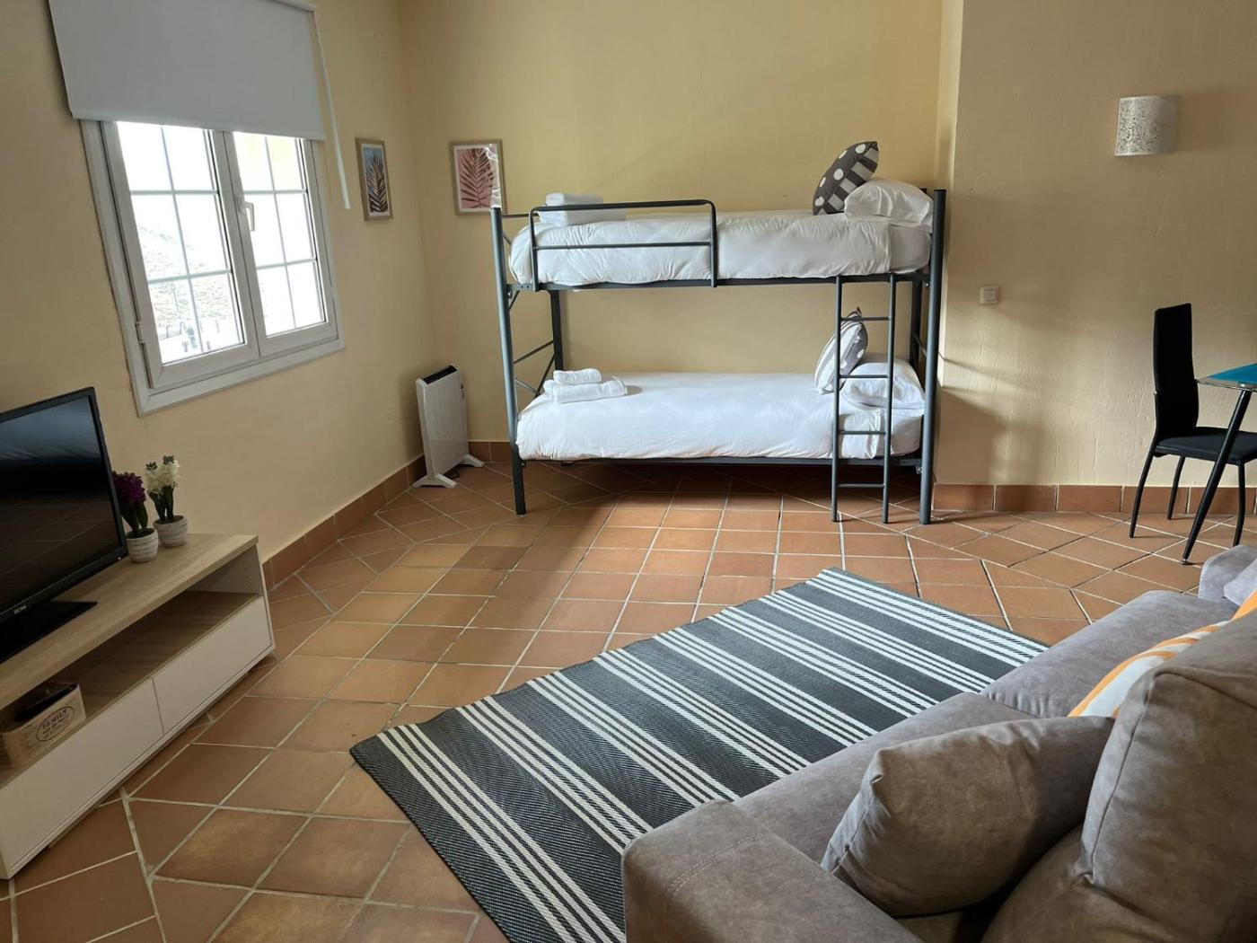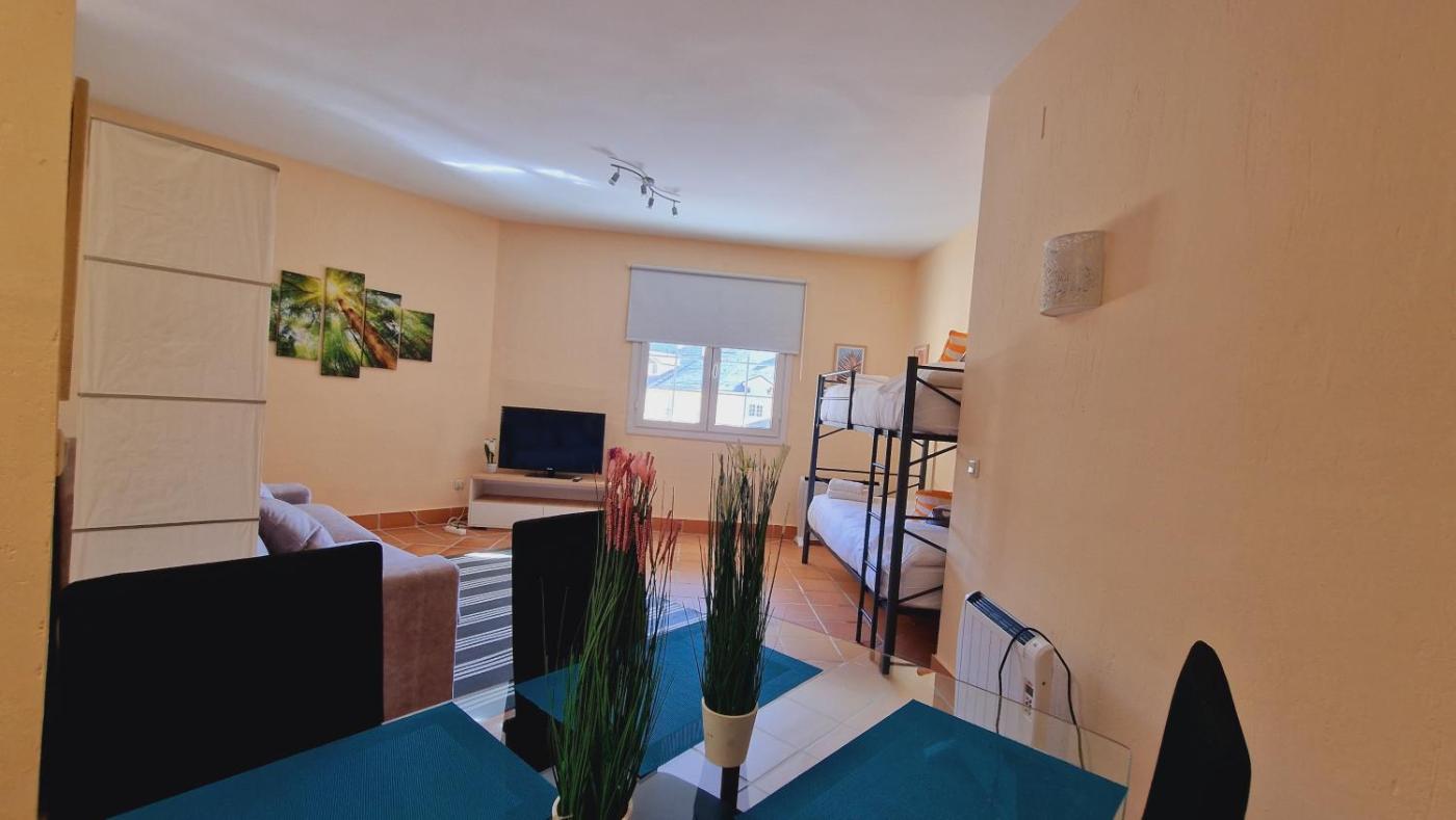 Estudio. Guests can make meals in the kitchen that has a stovetop, a refrigerator, kitchenware and a microwave. A seating area with a flat-screen TV, a desk and a private bathroom are available in this studio. The unit has 2 beds.